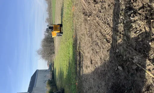 terrassement de terre végétale pour faire un chemin d’accès au chantier et profiter pour mettre l’arrivée d’eau et d’…